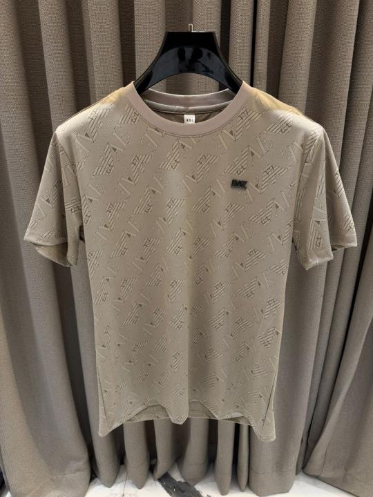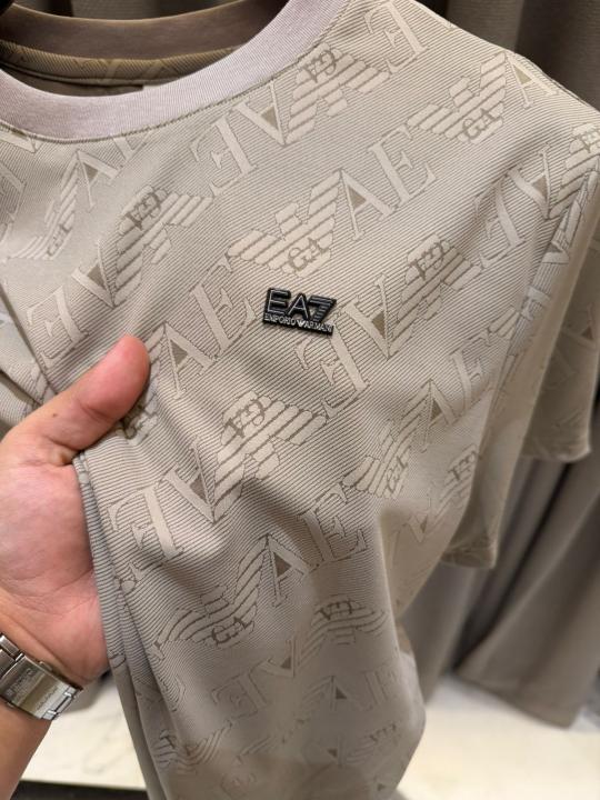 Emporio Arman_i Chest Logo Imported Round Neck T-shirt Beige